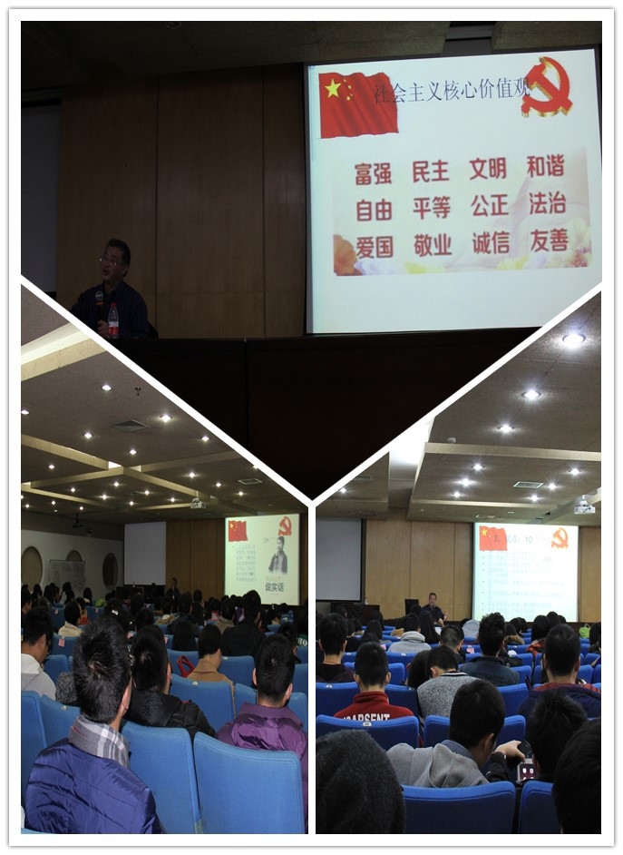学习掌握中国共产党的理论知识,有助于同学们在时代的大潮中把握自己的人生方向,明确人生规划,走在时代发展前列。闻老师结合自身经验,语言幽默,整个报告生动有趣,使同学们了解并学习到当今时事政治,对十八届五中全会精神有了新的体会和领悟。报告会上,同学们时不时报以热烈的掌声和笑声。